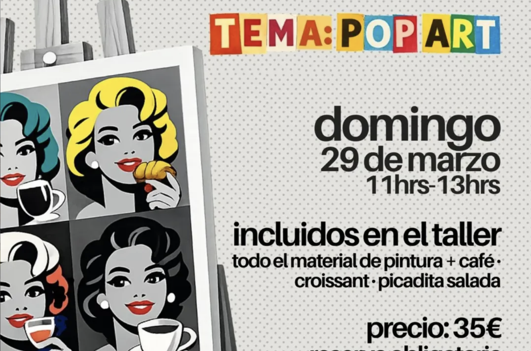 Un taller guiado y preparado por Delafont Art Studio, en el que realizaréis vuestras propias creaciones inspiradas en el Pop Art, con colores vibrantes, temáticas gamberras, a través de técnicas sencillas ! 🌈🖌️